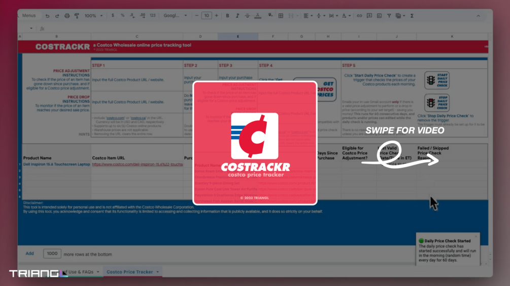 No auto-subscriptions; just buy any duration you want. Upon purchase, get your personal copy of COSTRACKR connected to our custom advanced code library, with a comprehensive video tutorial. *Gmail address required.